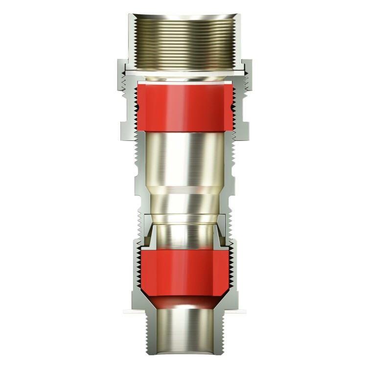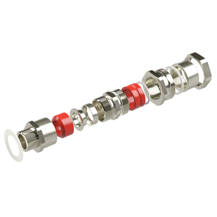 Взрывозащищенный кабельный ввод серии КАС для бронированного кабеля М40х1,5 d:24,8-31мм D:27-37мм. Присоединительная резьба GAS 1 1/2". Никелированная латунь IP66/IP68