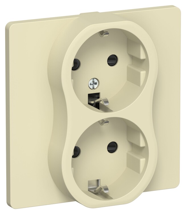 Розетка 2х2P+E со шторками в сборе Classic безвинтовое крепление 16А РСш12-1-К-ФлН навахо FLITE