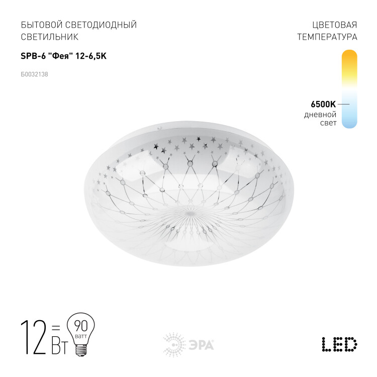 Светильник потолочный светодиодный ЭРА Классик без ДУ SPB-6 "Фея" 12-6,5K 12Вт 6500K 960Лм