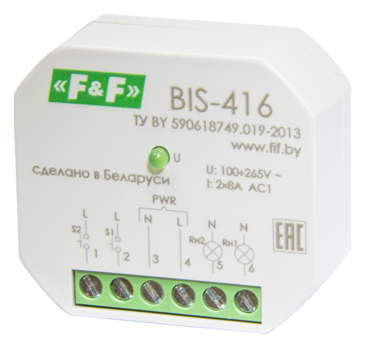 Реле импульсное 2х8А, 2NO/NC IP20 BIS-416