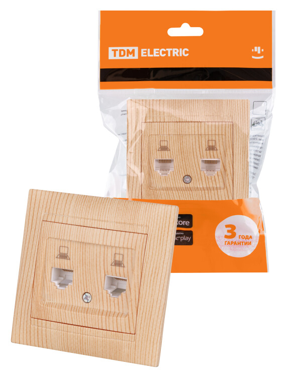 Розетка компьютерная двойная RJ45 сосна "Лама" TDM