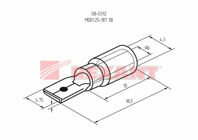 Клемма плоская изолированная РПи-п 1.5-(4.8)/РПИп 1,25-5 штекер 4.8 мм 0.5-1.5 мм² красная REXANT