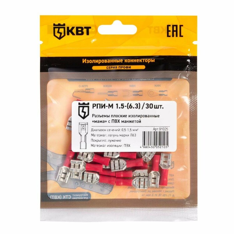 Разъем кабельный плоский изолированный «мама» РПИ-М 1.5-(6.3) (30 шт) (КВТ)