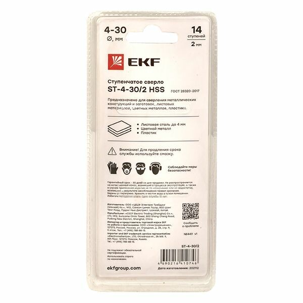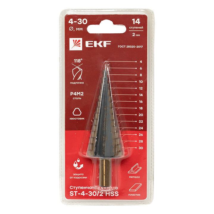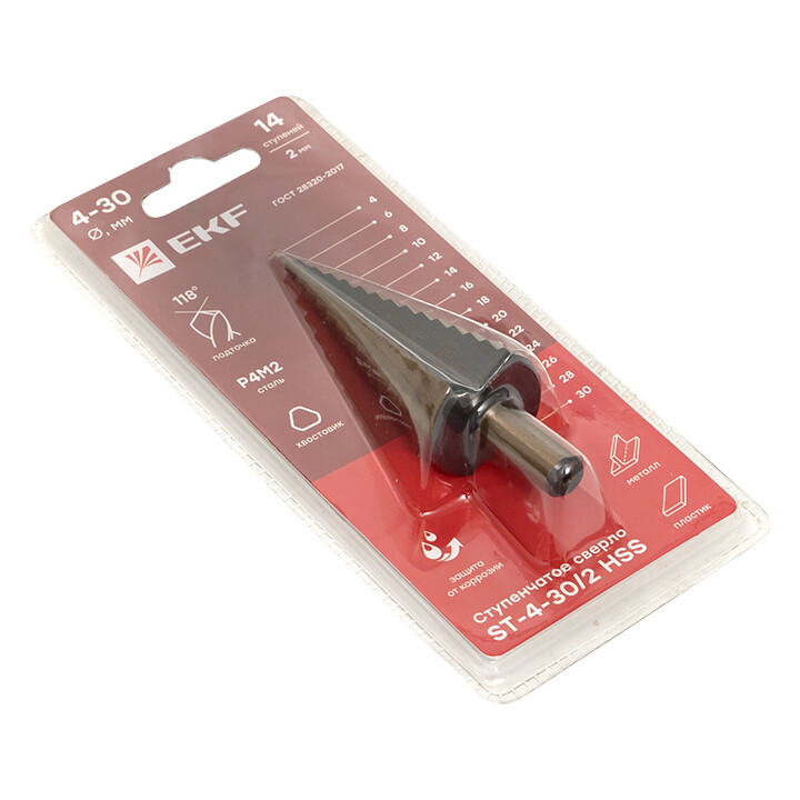 Сверло по металлу, ступенчатое, 4-30 мм, 14 ступеней, HSS, ST-4-20/2