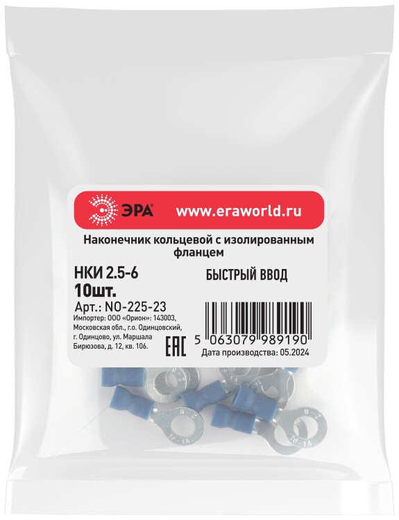 Наконечник кольцевой ЭРА NO-225-23 НКИ 2.5-6 с изолированным фланцем (упаковка 10 шт.)