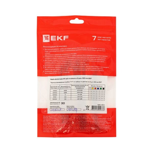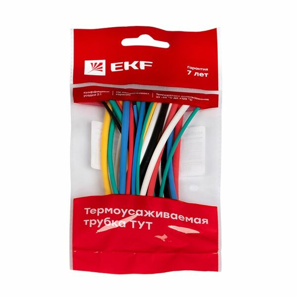 Набор ТУТ нг: 6 цветов по 5шт. Разного диаметра (1/0,5; 1,5/0,75; 2/1; 2,5/1,25; 3/1,5) 100мм. EKF P