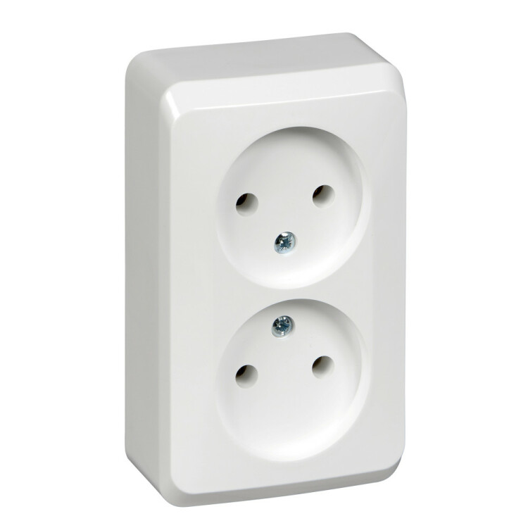 Розетка 2х2P без шторок белый Этюд