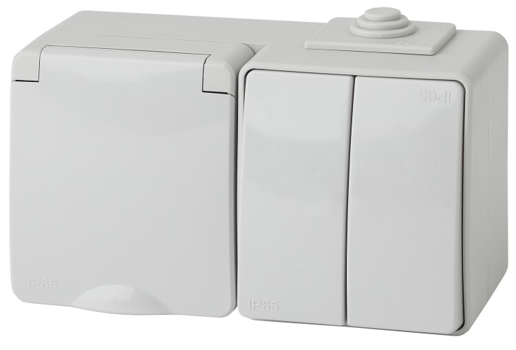 11-7602-03 ЭРА Блок розетка+выкл. двойн. гориз. IP65, 16A(10AX)-250В, ОУ, Эра Эксперт, серый (5/50/8