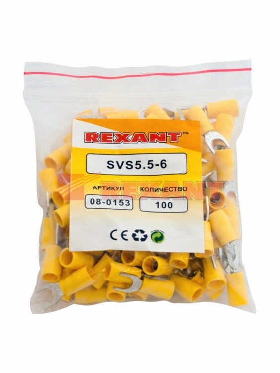Наконечник вилочный изолированный 6.5 мм 4-6 мм ² (НВи 6.0-6 / НВи 5,5-6) желтый REXANT