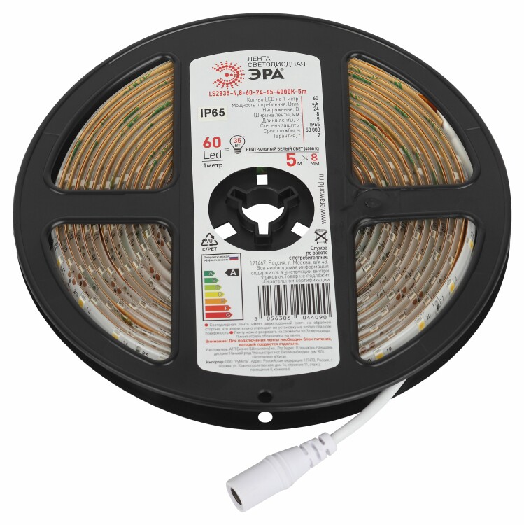 Светодиодная лента ЭРА LS2835 -4,8-60-12-4000K-IP65-1 year-5m дневной белый 5м