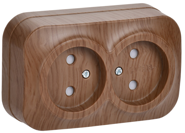 Розетка 2х2P со шторками 10А накладной монтаж РСш22-2-ХД дуб GLORY IEK