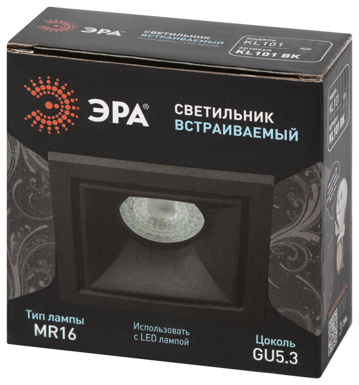 Встраиваемый светильник алюминиевый ЭРА KL101 BK MR16 GU5.3 черный
