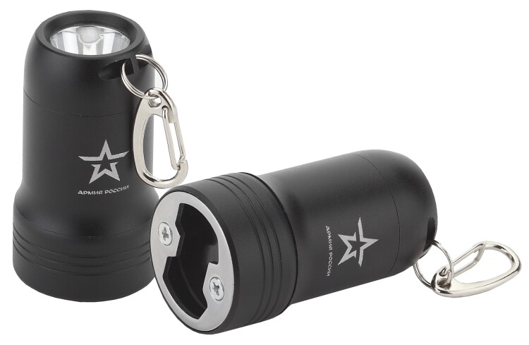 Фонарь брелок, 0,5Вт 25Лм/м 28м + рефлектор, алюминиевый, открывашка, 3XLR44 в комплекте "Привал" BB-601 "Армия России"