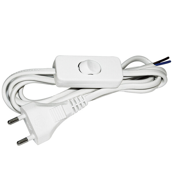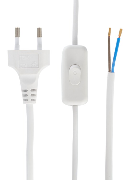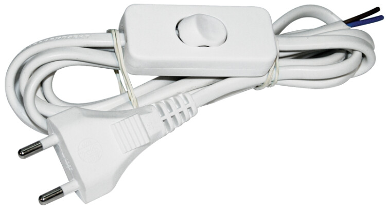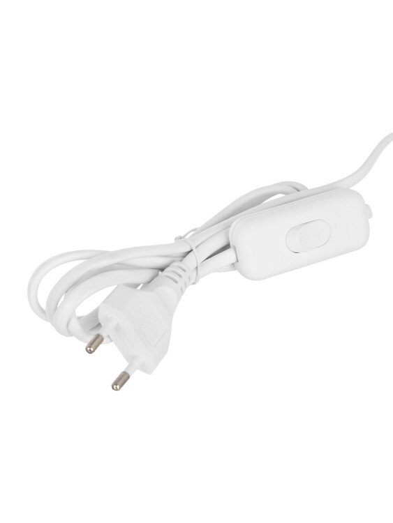 Шнур сетевой, с вилкой, для бра, ШВВП 2x0,75мм², IP20, длина 2 м, ПВХ, белый, с проходным выключателем, УШ-1КВ