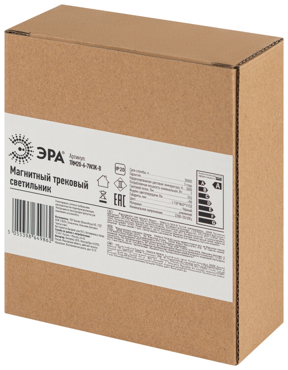 Магнитный трековый светильник ЭРА TRM20-6-7W3K-B для системы NOVA 48V 7Вт 3000К направленный свет черный