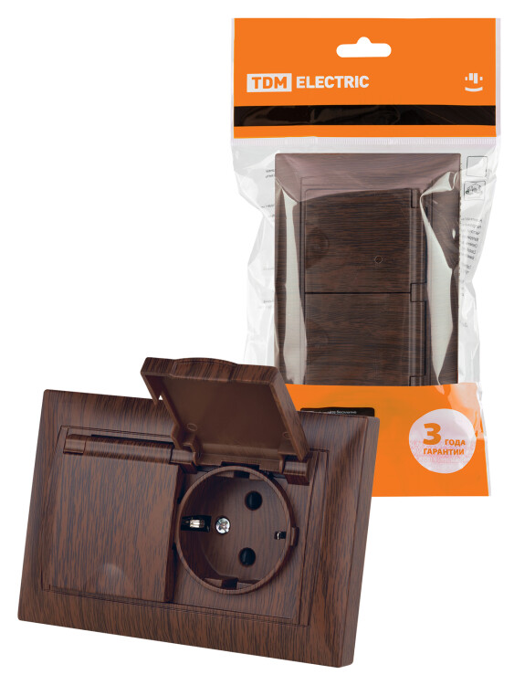 Розетка двойная 2П+З 16А 250В IP44 с защ. шт. с крышкой венге "Лама" TDM