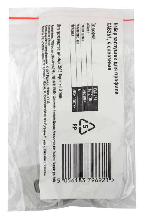 Набор заглушек для профиля ЭРА 1612-3B для профиля CAB261 4 сквозные (500/24000)