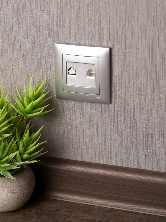 Валенсия лицевая панель розетки RJ-45 1-местная сталь EKF PROxima