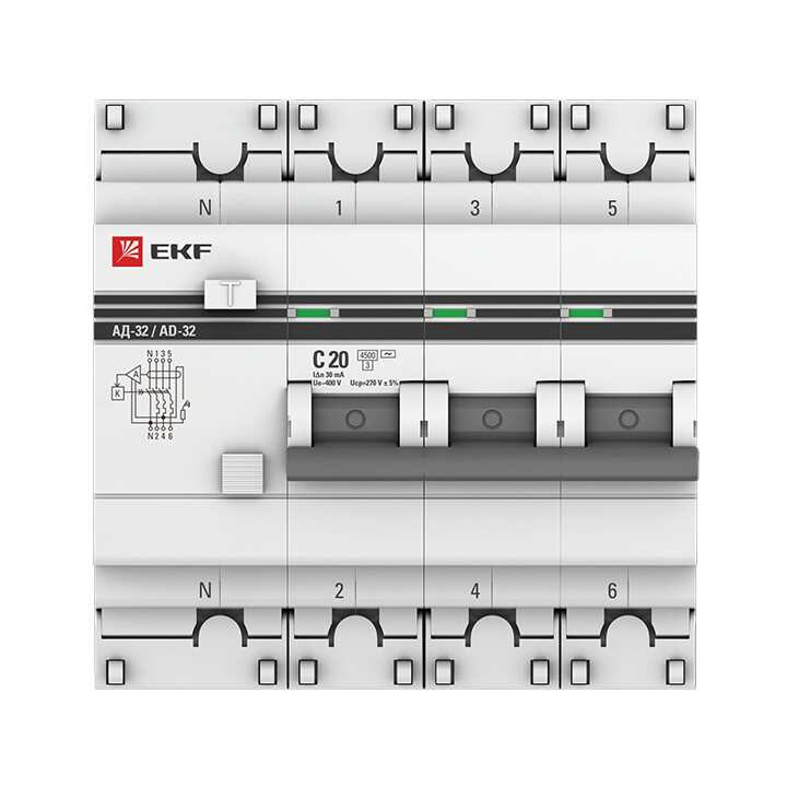 АД-32 3P+N 20А (С) 30мА тип (АС) эл. 4,5кА EKF PROxima