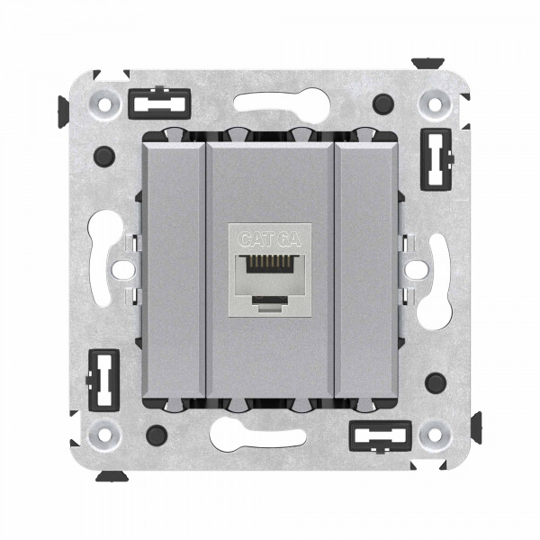 Компьютерная розетка RJ-45 без шторки в стену, кат.6А одинарная экранированная, "Avanti", "Закаленная сталь"