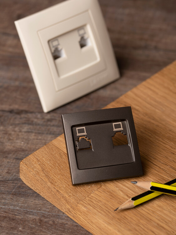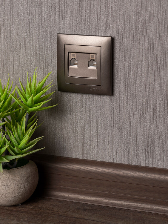 Валенсия лицевая панель розетки RJ-45 2-местная графит EKF PROxima