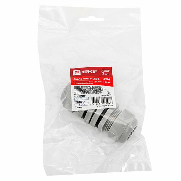 Сальник PG25 IP54 (2 шт) d отв. 31 мм / d провод. 16-21 мм EKF PROxima