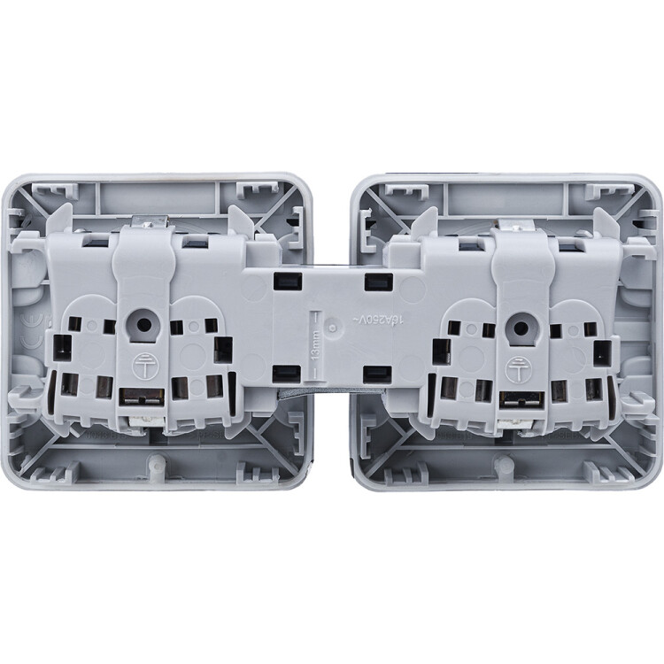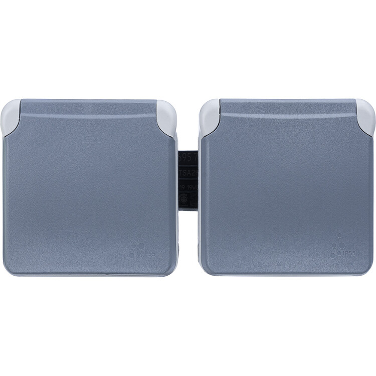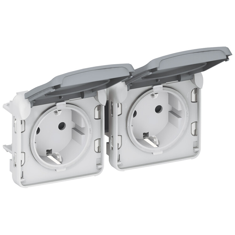 Розетка 2х2P+E для коробки накладного монтажа горизонтальная серый IP55 Plexo 16А