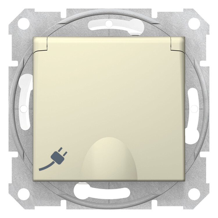 Розетка 2P+E со шторками и крышкой IP44 бежевый Sedna