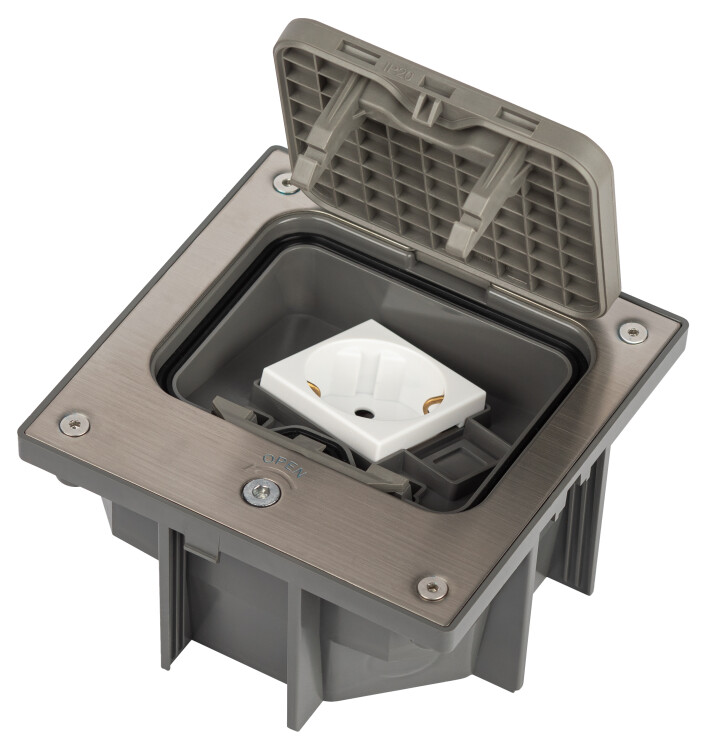 Люки ЭРА ОФИС 18-6002-03 IP66 Люк в бетон с розеткой, под шестигранник, серый