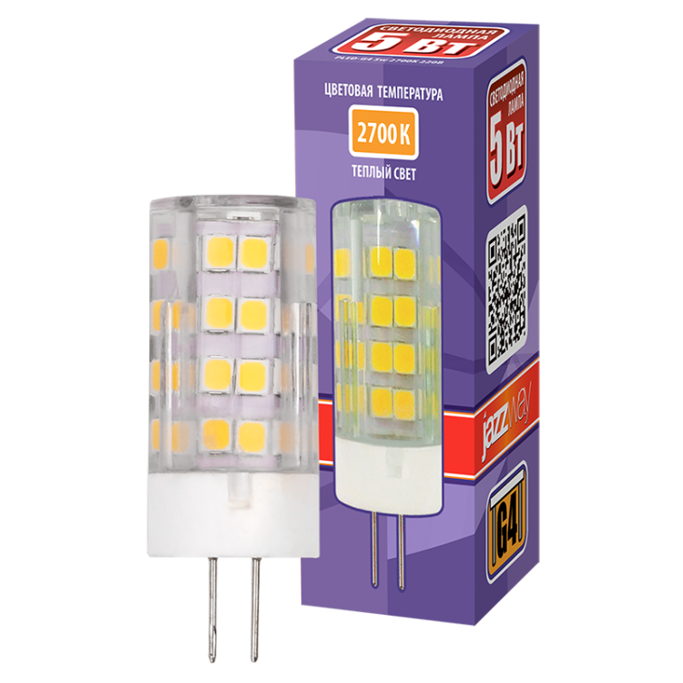 Лампа светодиодная 5 Вт 175-240В G4 капсульная, тёплый 2700K