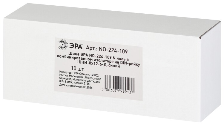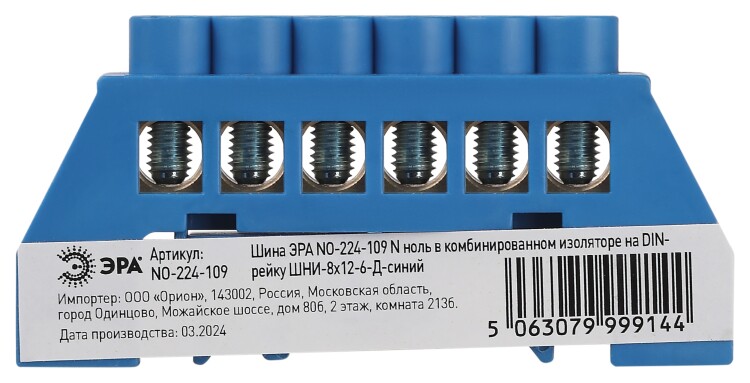 Шина ЭРА NO-224-109 N ноль в комбинированном изоляторе на DIN-рейку ШНИ-8х12-6-Д-синий