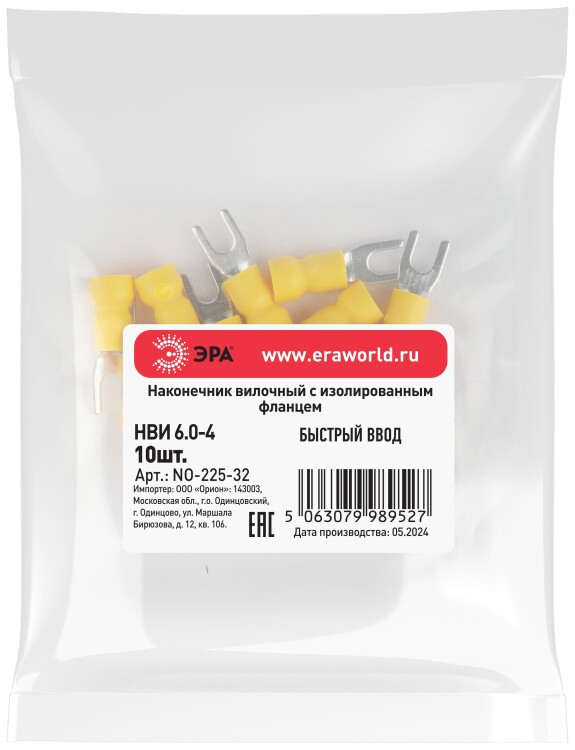 Наконечник вилочный ЭРА NO-225-32 НВИ 6.0-4 с изолированным фланцем (упаковка 10 шт.)