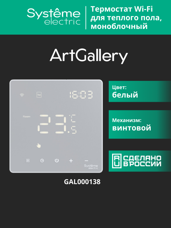 Термостат Wi-Fi электронный для теплого пола в сборе 16A белый ArtGallery