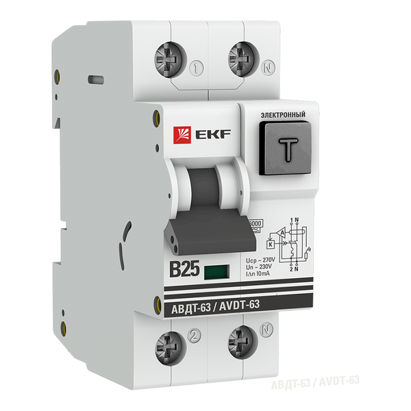 Дифференциальный автомат АВДТ-63 25А 10мА (характеристика B, электронный, тип А) 6кА EKF PROxima