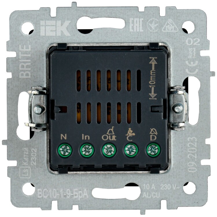 BRITE Кнопка звонка с инд. отел. 10А ВС10-1-9-БрА алюм. IEK