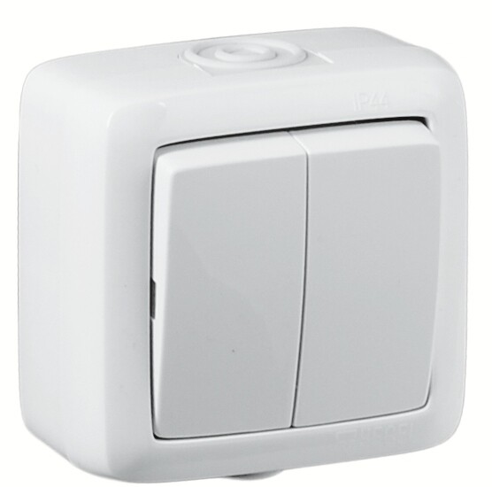 ВА16-251 Выключатель открытой установки, двухклавишный, брызгозащищенный, цвет белый