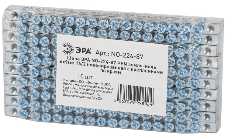 Шина ЭРА NO-224-87 PEN земля-ноль 6х9мм 16/2 никелированная с креплениями по краям