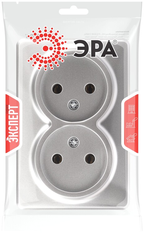 Розетка ЭРА Эксперт 11-2202-03 2х2P IP20 16A-250В ОУ алюминий