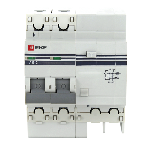 Автомат. выкл. дифф. тока 2-пол. 63А 30мА тип AC 4,5кА хар-ка C серия АД-2 63А/ 30мА (хар. C, AC, электронный, защита 270В) 4,5кА EKF PROxima