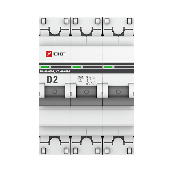 Автоматический выключатель 3P 2А (D) 6кА ВА 47-63M без теплового расцепителя EKF PROxima