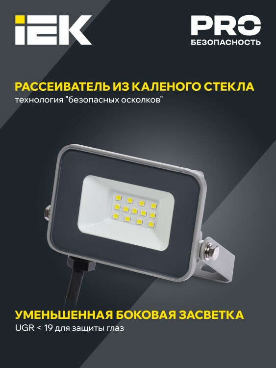 Прожектор СДО 07-10 светодиодный серый IP65 IEK
