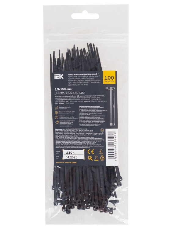 Хомут кабельный полиамид 2,5х150мм стандартный 6.6 (-30С+80С) черные (упак.100шт.)