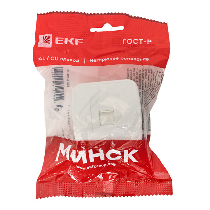 Розетка RJ11 ОП белая Минск EKF Basic