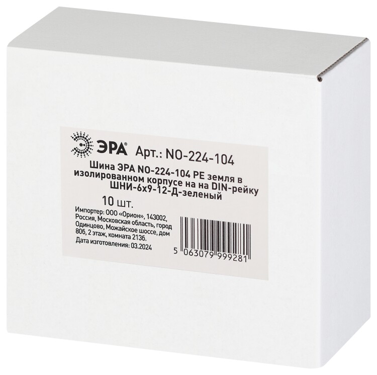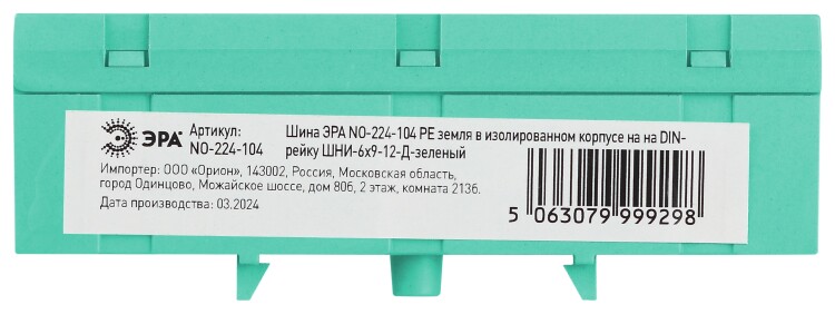 Шина ЭРА NO-224-104 PE земля в изолированном корпусе на DIN-рейку ШНИ-6х9-12-Д зеленый