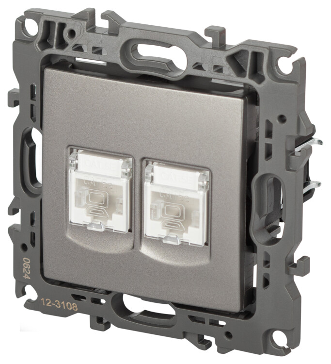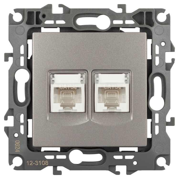 Розетка ЭРА Серия 12 12-3108-16 информационная двойная 2XRJ45, титан