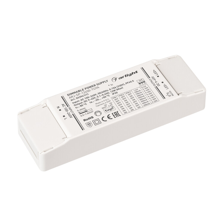 Блок питания ARJ-SP-12450-TUYA (12W, 9-45V, 0.1-0.45A, WiFi, 2.4G) (Arlight, IP20 Пластик, 5 лет)