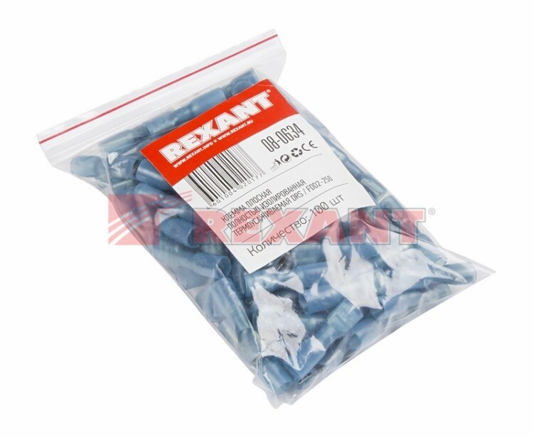 Клемма плоская полностью изолированная термоусаживаемая РПи-м-т 2.5-(6.3)/РпИм-т 2-7-0,8 гнездо 6.6 мм 1.5-2.5 мм² синий REXANT