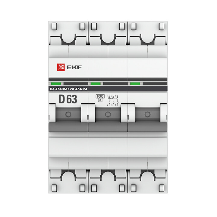 Автоматический выключатель 3P 63А (D) 6кА ВА 47-63M без теплового расцепителя EKF PROxima