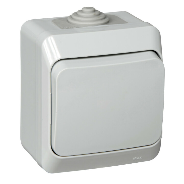 Выключатель 1 клавишный накладной серый IP44 Этюд