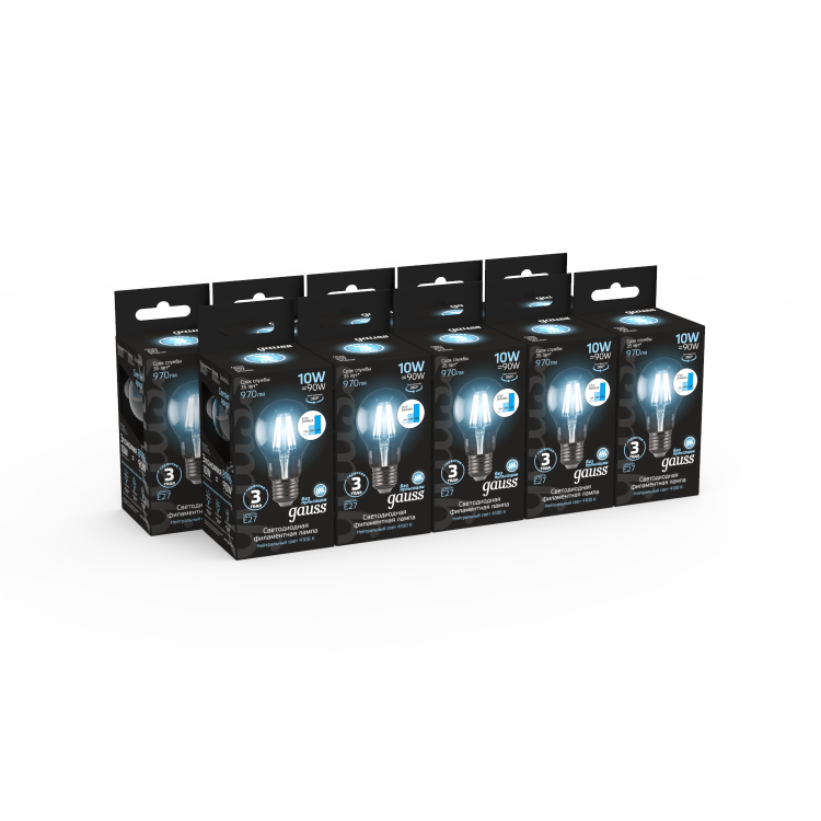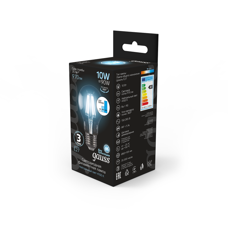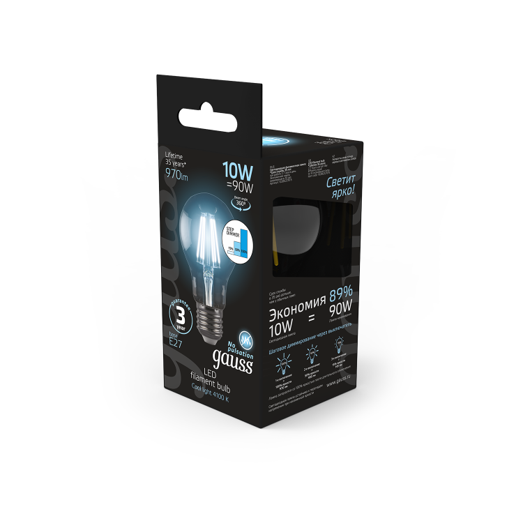 Лампа светодиодная 10 Вт 230В E27 Filament A60-пошаговое диммирование холодный 4100K
